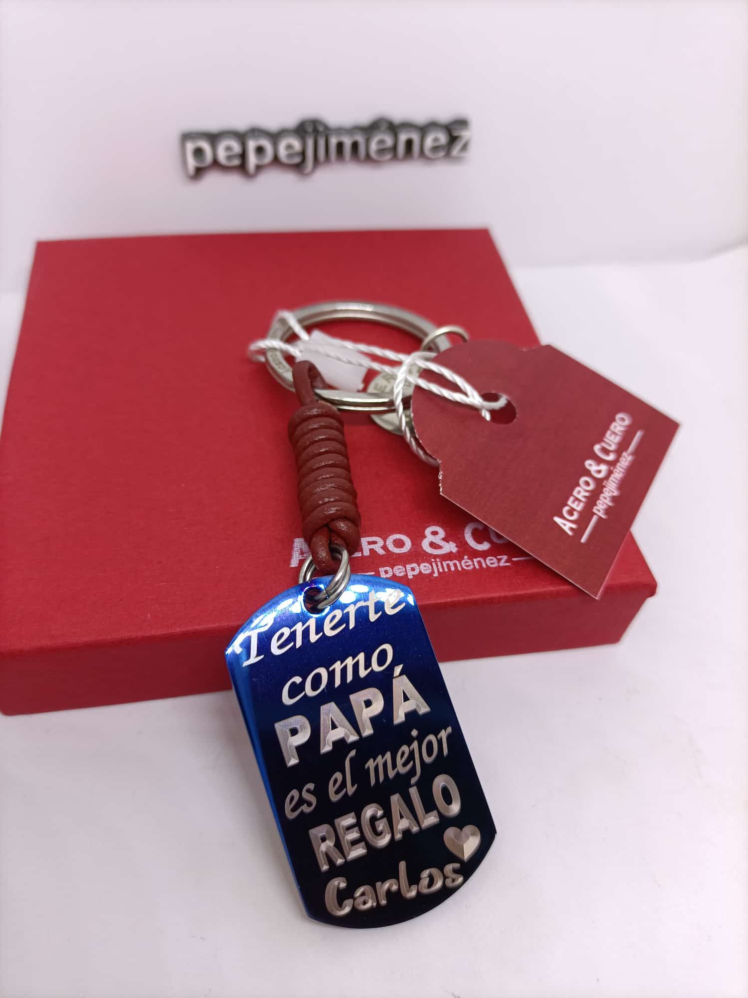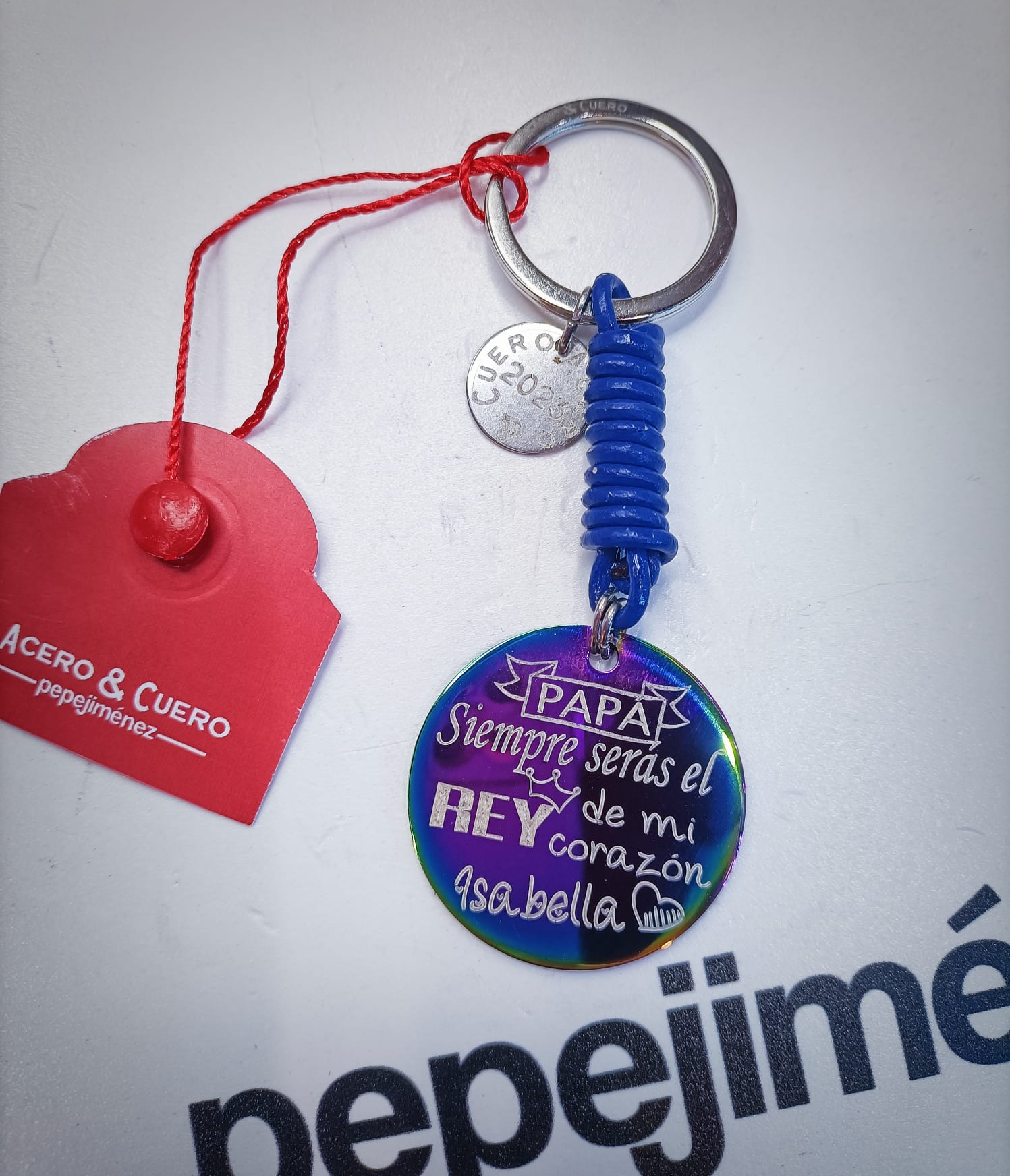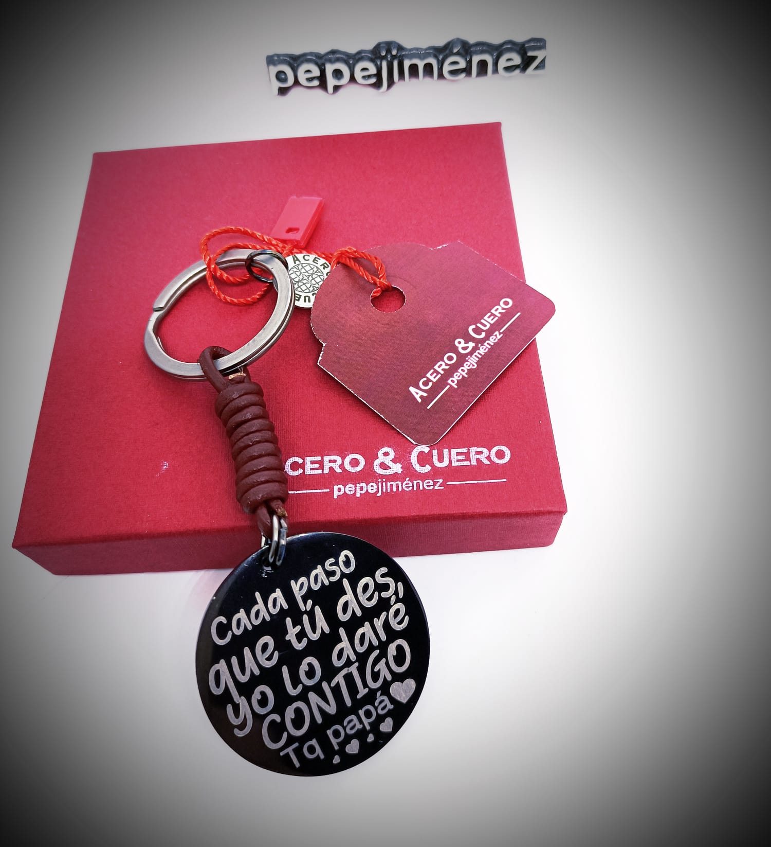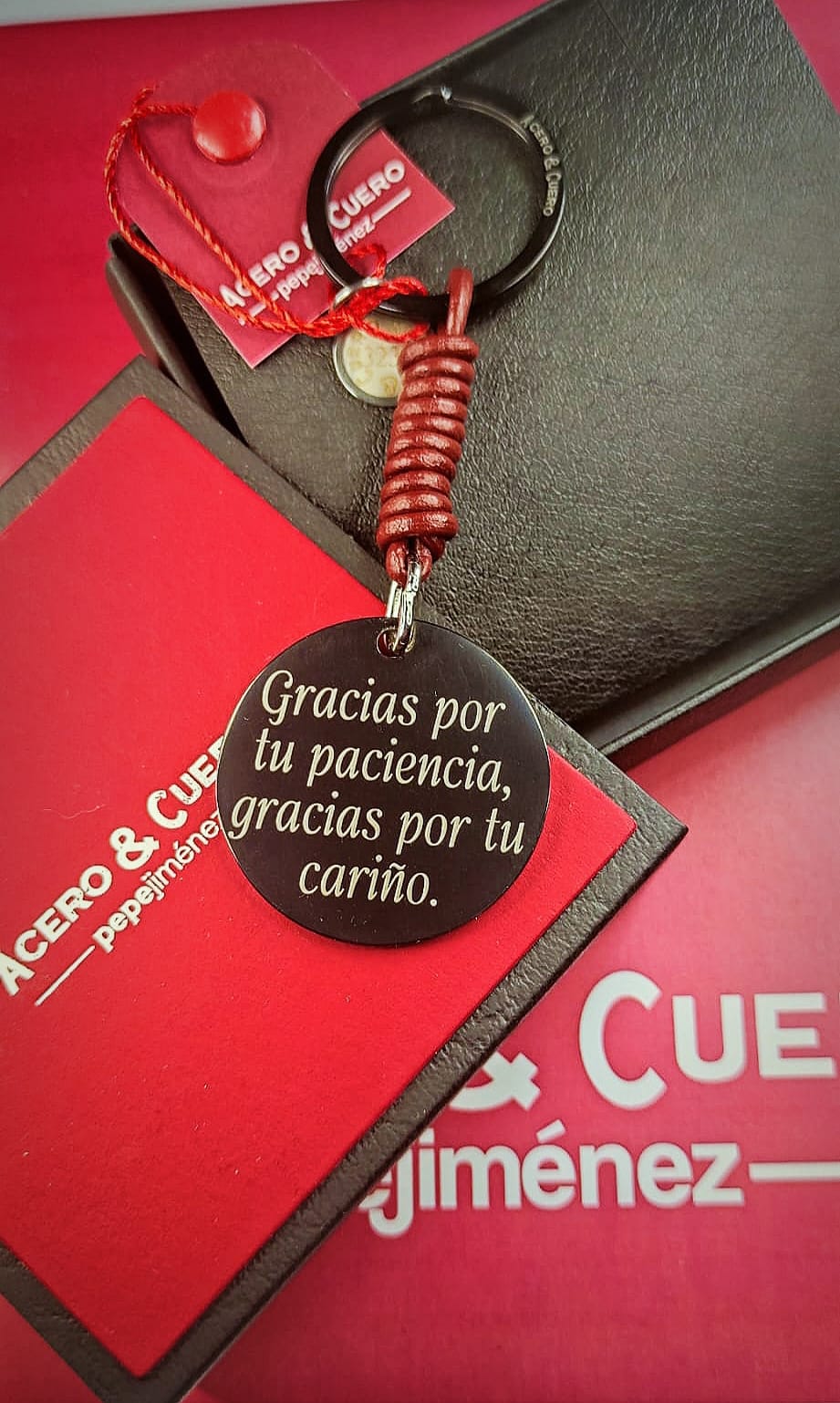 Entre el asa y chapa tendrá una bonita cuerda de cuero.